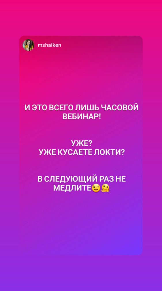 Сразу после оплаты, вам откроется доступ к записи мастер-класса на платформе. Вы сможете просматривать его в удобное для вас время, продолжительность 1,5 часа.