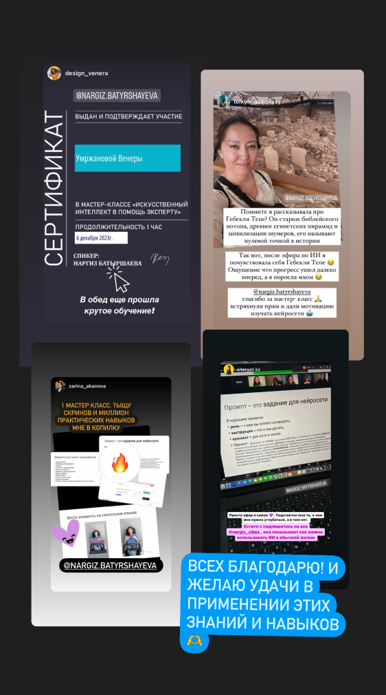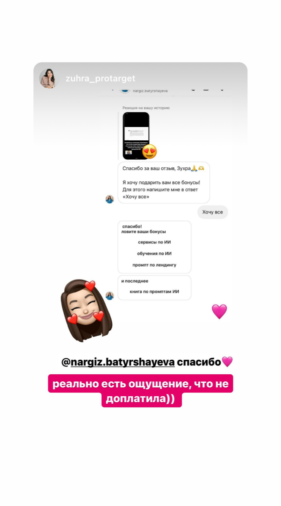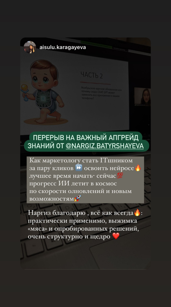 У вас будет 1 созвон с персональным куратором, который покажет, как внедрить нейросети именно в вашу работу и бизнес